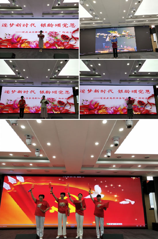 “‘七一’建黨節的前夕,縣退教協就舉辦朗誦活動,有22個節目80余位銀齡教師登臺朗誦,代表了全縣1190余名退離休教職工要表達的心聲:祝愿偉大的中國共產黨朝氣蓬勃、永葆青春!祝福偉大的祖國繁榮昌盛,人民幸福安康!”涂志丹會長表示。(周建娥)