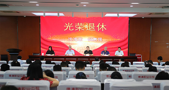 7月3日,德清職業中專為沈海榮和倪惠強兩位教師舉辦了隆重的榮休儀式,以此表達對他們多年來在教育崗位上無私奉獻的敬意。全校教職工齊聚一堂,共同見證了這一感人時刻。儀式由黨政辦負責人李馥萸主持。