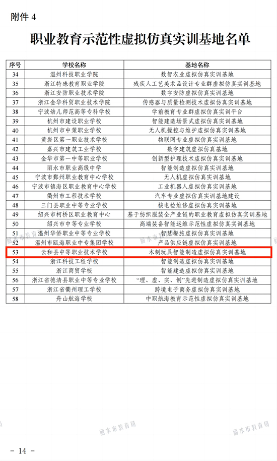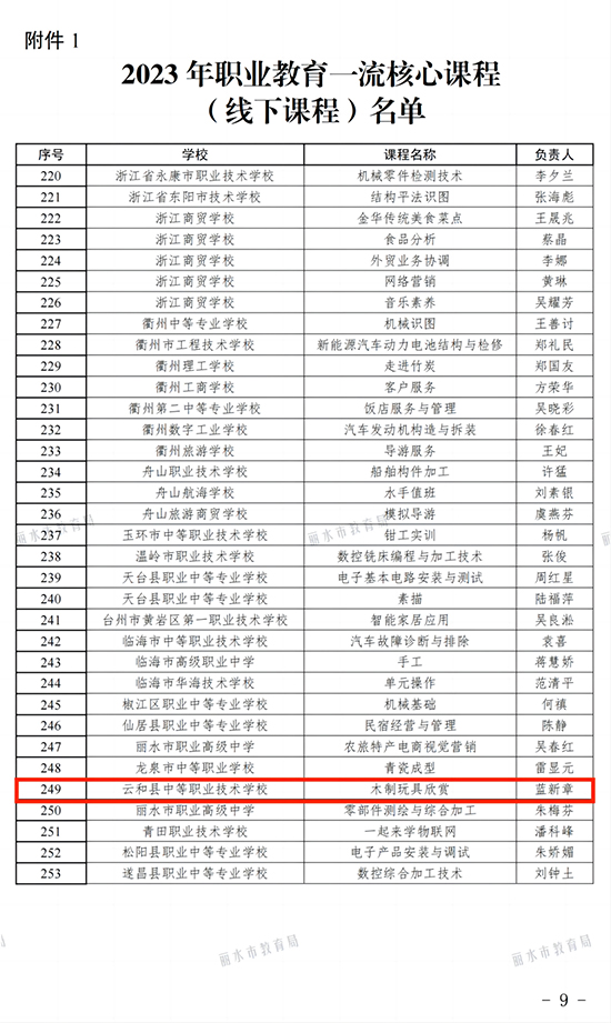 近日,浙江省教育廳辦公室公布了2023年職業(yè)教育一流核心課程等教學(xué)相關(guān)項(xiàng)目名單,云和縣中等職業(yè)技術(shù)學(xué)校申報(bào)的2個(gè)項(xiàng)目成功入選。其中,藍(lán)新章老師負(fù)責(zé)的課程《木制玩具欣賞》獲評(píng)2023年職業(yè)教育一流核心課程(線下課程),“木制玩具智能制造虛擬仿真實(shí)訓(xùn)基地”獲評(píng)職業(yè)教育示范性虛擬仿真實(shí)訓(xùn)基地。