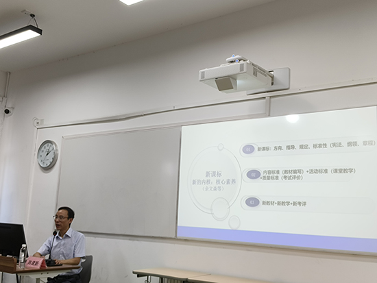 浙江省特級教師陳建新給學(xué)員們作專題講座《核心素養(yǎng)落地的策略與建議》。陳老師從新課標的角度出發(fā),用五個案例強調(diào)了課程體系與教學(xué)內(nèi)容是核心素養(yǎng)落地的重要載體,學(xué)校和教師應(yīng)依據(jù)核心素養(yǎng)的要求,對現(xiàn)有課程體系進行優(yōu)化調(diào)整,確保學(xué)科教學(xué)能夠緊密圍繞核心素養(yǎng)展開。