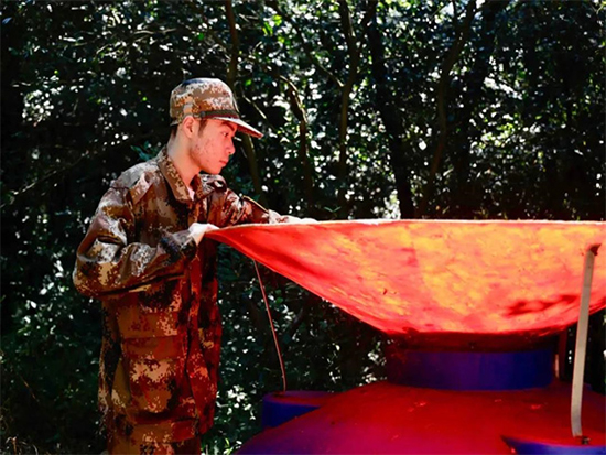 陳少潼是其中的一位。林學專業,平底球鞋、迷彩服、帽子是他的巡林標配。在這片青山中,他每天要走20多公里,一年下來需要徒步上萬公里。每天清晨當第一縷陽光穿透樹葉的縫隙陳少潼便整裝待發,開始一天的巡山工作。