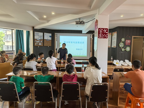 呂老師從中華孝德文化的內(nèi)涵入手,圍繞弘揚(yáng)民族傳統(tǒng)美德,樹立好家風(fēng)好家訓(xùn)為主線展開,尤其通過幾個(gè)生動(dòng)的小故事向小學(xué)員們揭示中華孝德文化的深刻內(nèi)涵和新時(shí)代文明實(shí)踐的現(xiàn)實(shí)意義。并較好地與小朋友互動(dòng)。小朋友踴躍舉手發(fā)言,分享各自家庭孝德教育和家教家風(fēng)故事,有的說爸爸以身作則、誠實(shí)守信,有的講媽媽孝敬奶奶、服務(wù)長輩等教育孩子的典型事例?,F(xiàn)場氣氛熱烈,讓大家感受到好家風(fēng)的溫暖和孝德文化的力量。