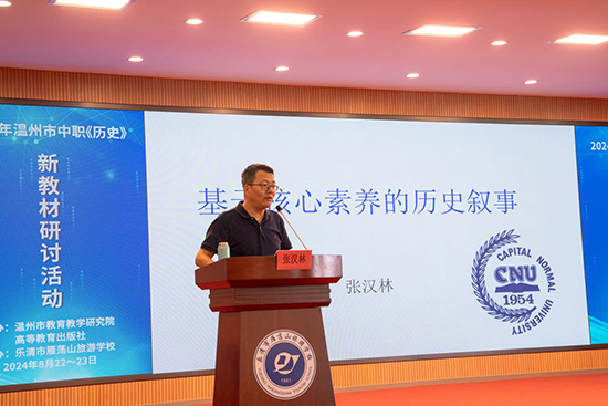 22日上午,首都師范大學資深教授、博士生導師張漢林教授作《基于核心素養的歷史敘事》主題講座,旨在探討如何通過歷史敘事教學培養學生的核心素養。