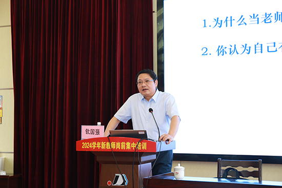 長興縣教育局黨委書記、局長欽國強開講第一課,他從和新教師們一起探討“為什么當老師”這個問題開始引入,不斷幫助新教師梳理自己從事教師這個行業的優點和不足,啟發大家深入思考準備成為一個怎樣的老師、入職后最重要的是做好什么、如何看待專業成長等問題,促使新教師做好職業規劃。長興縣教育局黨委副書記雷曉財進行《新教師的師德啟航——奠定職業生涯的道德基礎》的師德專題講座,他從教師要遵守的基本行為準則、合理把握教育懲戒的規則、師德師風事件處置原則三方面,讓新入職教師進一步明白教育的責任與使命。