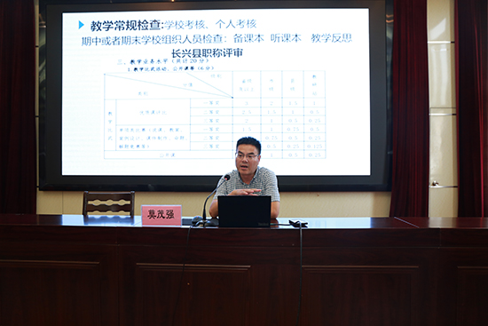 長興縣教育局分管安全的副局長沈漢奇進行了《提升安全素養 爭做優秀教師》的專題講座,他用理論和案例相結合的方式,指導新教師增強安全意識,掌握安全管理工作流程。長興縣教研中心莫茂強主任、陳衛東副主任根據不同學段進行了“教學常規”的專題講座,使新教師進一步明晰教學的相關要求。優秀班主任周會琴、吳文菊分學段為新教師們作“班級管理”的專題講座,送上諸多的班級管理實用錦囊。