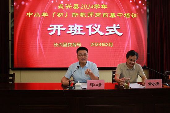 開班儀式由長興教師進修學院書記章小杰主持,長興縣教育局黨委委員、人事科科長李峰到會講話,他希望全體新教師一要熱愛長興扎根長興,二要轉變角色明確定位,三要制定策略明確方向。蔣秋英副院長從培訓目標、培訓內容、培訓要求三方面解讀了崗前培訓方案。雉城中學吳亦作為新教師代表在發言中表示以立德樹人為己任,用最飽滿的熱情、最認真的態度、最積極的行動投入到培訓和教育中。會上還表彰了2023學年新教師培訓中的優秀學員,第二實驗小學張淇作為優秀學員在會上分享一年來的成長與收獲。