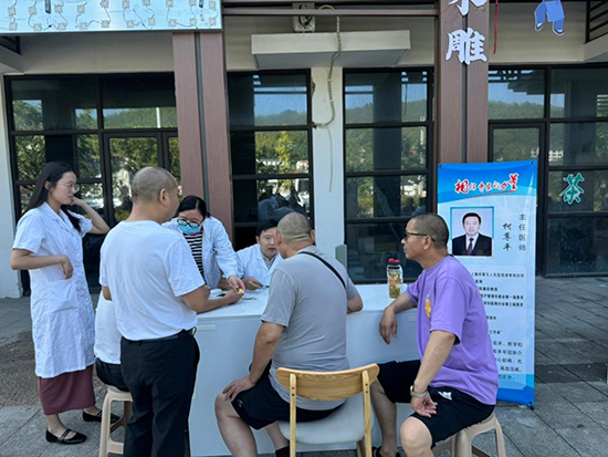 為提高社區(qū)居民健康生活品質(zhì),提升社區(qū)居民對自身健康的認知,倡導社區(qū)居民重視自身的身體狀況,引起社區(qū)居民對疾病預防的重視程度,改變原來“小病抗一抗”的錯誤觀念。安吉社區(qū)教育學院上墅教育中心協(xié)同安吉縣上墅鄉(xiāng)董嶺村黨群服務中心對接聯(lián)系了上海市第五人民醫(yī)院專家,柯尊平一行5人于8月24日在董嶺村開展了以“義診活動進社區(qū) 便民服務暖人心”為主題的社區(qū)義診活動。