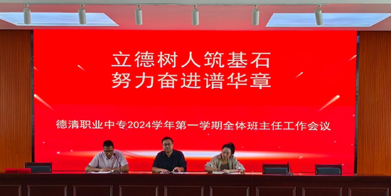 金秋時節(jié)開學(xué)季,砥礪前行共奮進(jìn)。為進(jìn)一步落實(shí)立德樹人根本任務(wù),確保新學(xué)期班主任工作有序高效開展,8月27日下午,德清職業(yè)中專召開2024學(xué)年第一學(xué)期全體班主任工作會議。校黨委委員馬紀(jì)孝、各系政教主任以及全校83個班級的班主任參加會議,會議由政教處處長鄧志民主持。