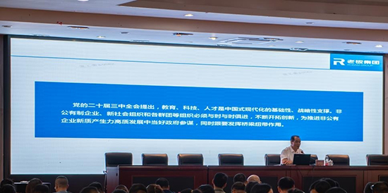 唐根泉圍繞“企業(yè)概況、創(chuàng)新與實(shí)踐、黨群文化”三方面詳實(shí)闡述了老板集團(tuán)的發(fā)展歷程、“老虎鉗”創(chuàng)業(yè)精神等情況,并就“黨經(jīng)融合 五領(lǐng)工程”“未來(lái)工廠”黨建智慧化平臺(tái)進(jìn)行精彩分享。