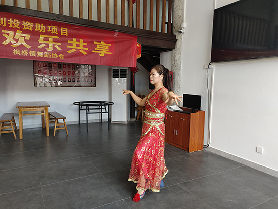 楓橋鎮楓之韻藝術團的演員們表演的舞蹈《盛世歡歌》,越劇選段《送花樓會》,歌曲《前門情思大碗茶》……廣場舞、表演唱、歌曲、舞蹈等節目輪番上臺,現場氣氛熱烈,觀眾激動之余,情不自禁地上臺表演了太極拳、兒童舞蹈、越劇清唱等節目。最后,全體演員合唱《我和我的祖國》。