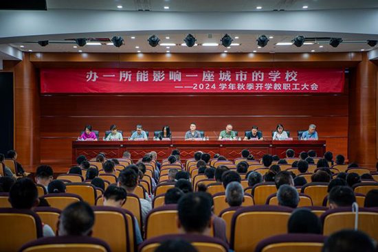 為實現“辦一所能影響一座城市的學校”的新目標,學校以內涵建設為核心,構建學校發展的“四梁八柱”,并明確六項核心要義:躬耕樂道、文風浸潤,移步有景、人景相融,尊重人格、敬畏自然,學術嚴謹、精神自由,融合產教、人才匠心,鮮明特色、社會推崇。我們確立了行動綱領,塑造學校精神,提煉學生內質,定位教師團隊,打造高三文化,并創建“五步劍道”育人體系,旨在促進產城人融合,推動學校高質量發展,鑄就教育典范。丁校長就學校具體工作的實際情況提出以下三方面要求: