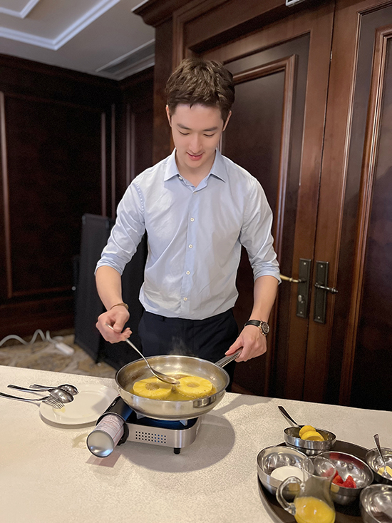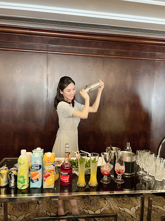 孫建輝賽教融合創新培養工匠工作室、吳佳妮首席技師工作室、和平飯店等多位技能專家帶來了火焰菠蘿制作、手沖咖啡、無酒精雞尾酒調制、餐巾折花、藝術插花等技能交流和作品展示。