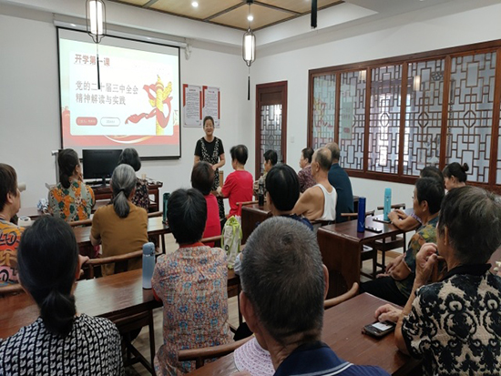 農村老人關心的農民增收、土地制度改革、農村養老等接地氣的問題通過熟悉的鄉音給老人們帶來了一堂重原味、好滋味的文化盛宴。“全會提到聚焦提高人民生活品質,我們十分期盼,我們將團結一心,為建設美麗鄣吳貢獻老人力量。”退休老教師余禮忠說。“居家養老服務中心不但解決了老年人的日間照顧、生活保障等問題,還讓老年人的精神生活得到了極大的滿足。”鄣吳鎮社會事務辦游媛主任說,學習貫徹落實黨的二十屆三中全會精神,就是要以改革創新精神把民生實事辦好辦實,讓改革紅利惠及更多人群。