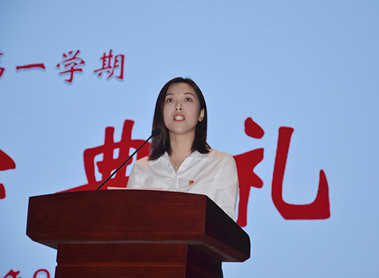 典禮上,該校金融服務(wù)與貿(mào)易學(xué)部萬騰怡老師作為學(xué)部主任代表進行發(fā)言。她希望同學(xué)們頂天立地,風(fēng)雨兼程;全面發(fā)展,不忘擔(dān)當;純美質(zhì)樸,優(yōu)雅流光。用自己的一言一行抒寫好每一個學(xué)部的部風(fēng)與學(xué)風(fēng)。