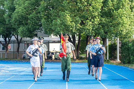 許賢超在開營儀式上致辭。他表示,軍訓作為每一位中職生踏入校園后的第一課,不僅僅是一場體能的挑戰,更是一次精神的洗禮。在軍訓中,同學們將學習到隊列訓練中的嚴謹與秩序,體驗到戰術演練中的智慧與勇氣,在集體生活中學會團結與協作,懂得責任與擔當。今年暑假,奧運健兒努力拼搏、為祖國爭金奪銀的身影歷歷在目,希望大家在軍訓中延續這股熱情,在強身健體中磨練意志,不斷成長、不斷進步,最終成為社會的棟梁之才!