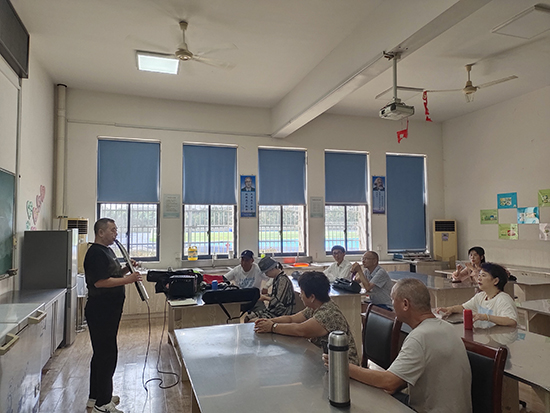 簡短的開班儀式結束后,劉老師對培訓班課程進行簡單介紹:“針對老年學員實際情況,課程設計注重基礎與實踐結合,從電吹管的基礎知識、演奏技巧到音樂理論,再到曲目演奏,循序漸進,目的是讓零基礎的學員也能在短時間內掌握電吹管演奏的基本技能。”此外,培訓班計劃安排定期音樂交流會,讓學員們有機會展示學習成果,互相學習,共同進步。學員們紛紛表達對學習電吹管的期待,希望通過這次學習,不僅能夠掌握一項新技能,更能在音樂的陪伴下,讓晚年生活更加充實和快樂。