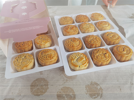 一位教師說道:“往年的月餅都是買來的,今年自己親手制作的月餅更有意義。”(邱立美)