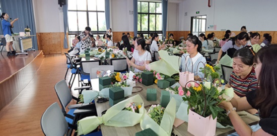 慶祝第40個(gè)教師節(jié)的到來(lái),9月6日下午,安吉縣社區(qū)教育學(xué)院遞鋪分院組織三官幼兒園教師開(kāi)展插花活動(dòng),來(lái)自幼兒園各個(gè)教學(xué)點(diǎn)的全體67位教師參加活動(dòng),邀請(qǐng)了漫香花藝工作室的花藝師姚紀(jì)蕓老師授課。