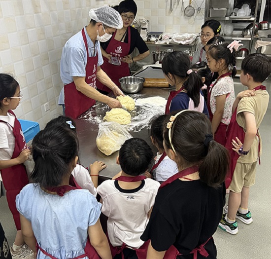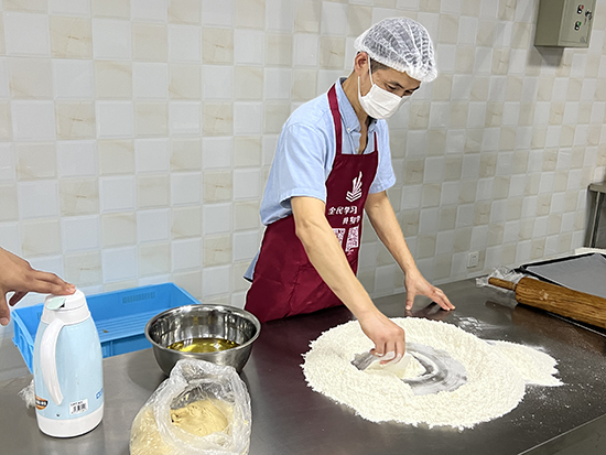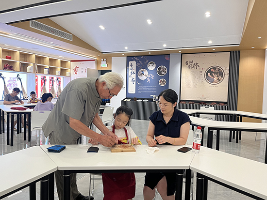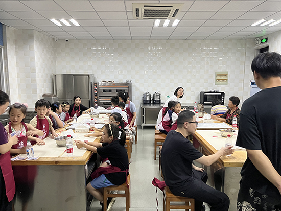 活動現場,氣氛熱烈。在烘焙室,趙亞平老師首先向參與者介紹了中秋節的傳統文化和傳統糕點,引起了大家對非遺技藝的興趣。接著,趙老師詳細講解了月餅的制作流程和技巧,并親自示范,指導家長和孩子們動手制作。在非遺教學館,姚祖觀老師則為另幾組家庭帶來了圓作體驗。他深入淺出地講解了圓作的歷史背景和制作技巧,并指導大家如何挑選制作圓作的材料。在姚老師的耐心指導下,各組家庭動手制作屬于自己的木掛件,體驗非遺技藝的魅力。整個活動過程中,孩子們興趣盎然,家長們也樂在其中,親子間的互動頻繁,現場氣氛溫馨而歡樂。