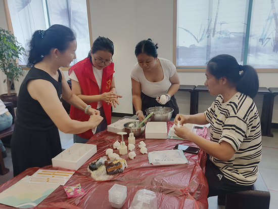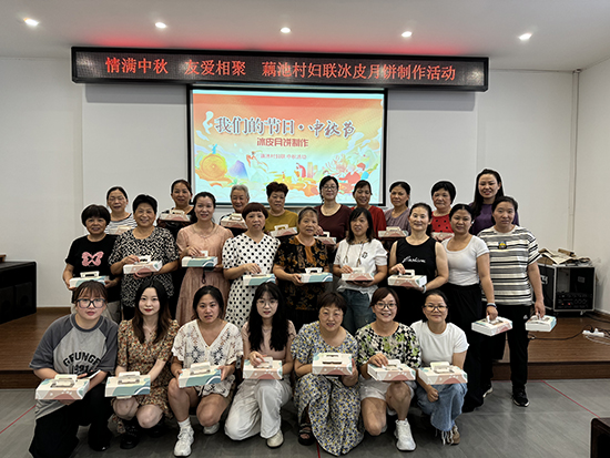 制作過程中,婦女們充分展現出超強的動手能力。每一個月餅都承載著大家對美好生活的向往。歷經一個多小時的辛勤努力,一盤盤晶瑩剔透、香氣四溢的冰皮月餅呈現在眾人眼前。望著自己親手制作的勞動成果,婦女們的臉上綻放出自豪與滿足的笑容。