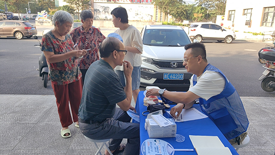 活動現場,義診醫生為前來就診的村民提供免費量血壓、測血糖檢測等,并耐心解答健康咨詢問題,從飲食、運動、用藥的注意事項等方面給予合理建議。來自復大口腔的牙醫從牙齒保護等方面入手,為大家帶來專業的牙科知識講解,耐心細致解答群眾問題,指導大家如何保護牙齒、預防口腔疾病。幸福鄰里的志愿者們還為社區老年人提供免費義剪服務,志愿者先對理發工具進行消毒,然后,將一張圍布披在“顧客”的肩膀上。在一梳一剪、一洗一吹之間,原本蓬亂的頭發變得整潔利落。