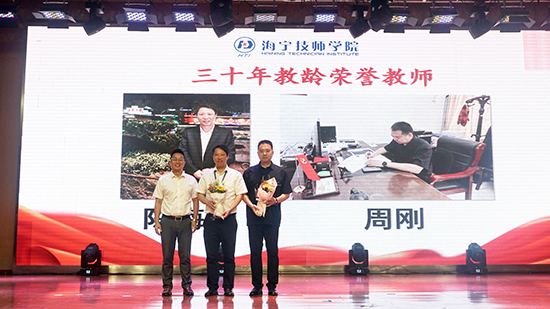 30年,青絲變華發(fā),不變的是教書育人的初心。院黨委副書記、院長姚忠杰為三十年教齡榮譽教師陳海鋒、周剛頒獎。