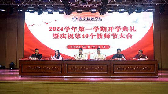 載夢共成長,揚帆新征程,9月6日上午,海寧技師學院通過線上、線下相結合的方式隆重舉行了2024學年第一學期開學典禮暨慶祝第40個教師節(jié)活動。院黨委書記陳海鋒,院黨委副書記、院長姚忠杰,副院長王立群、周剛、潘曉剛,企業(yè)嘉賓浙江朗視儀器有限公司副總經理陳家桃出席,典禮由副院長程鋒主持。