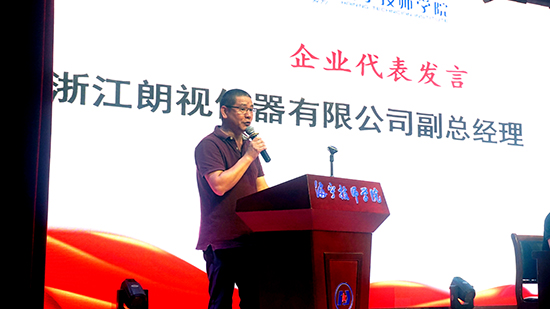 企業(yè)代表浙江朗視儀器有限公司副總經理陳家桃以“回饋社會、支持教育”的初心為起點,期待與學校加強合作,共同探索校企合作的新模式、新路徑,同時鼓舞海技學子珍惜在校時光,努力學習專業(yè)知識,提升綜合素質,為將來走上社會、服務國家打下堅實基礎。