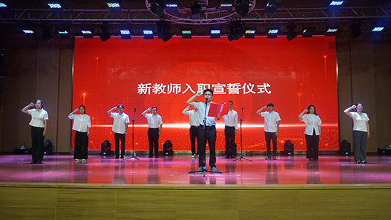 “我宣誓——我志愿成為一名人民教師,忠誠黨的教育事業(yè),遵守教育法律法規(guī)……”9名新教師在嘉興市中小學師德楷模李德恒老師帶領下莊嚴宣誓,接受入職第一課,正式開啟教書育人的新征程。隨后,新教師向指導師父獻花、行拜師禮,一個儀式,架起了一座座“青藍”之橋,凝“新”而聚,任重道遠。
