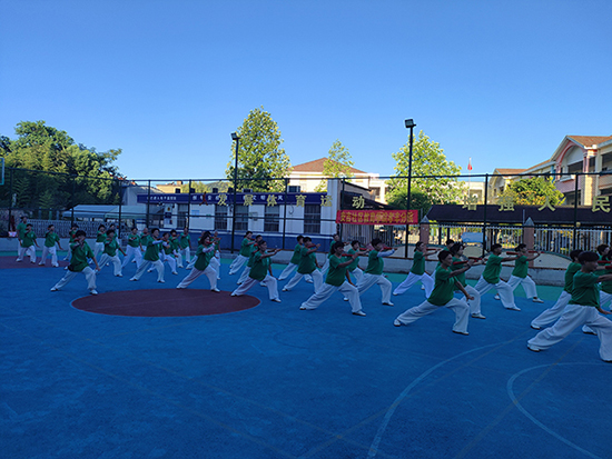 活動現場,老年朋友個個熱情洋溢,精神抖擻,一襲綠衣、白褲的練功服盡顯驚艷。李琴琴老師手持紅扇子,一招一式耐心分解、示范每一個動作。老年朋友們凝神斂氣,跟著李老師學習太極功夫扇的動作要領。開步抱扇,后弓步舉扇,一招一式盡量做到規范到位。中間休息時,還相互交流動作要領,不斷反復練習所學動作,現場氣氛十分活躍。