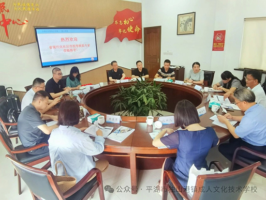 9月12日下午,浙江省現代化學校創建評估組一行在浙江省教育科學研究院副院長、研究員,省督學程江平組長帶領下,來到平湖市獨山港鎮成人文化技術學校,開展現場評估與核查工作。嘉興市教育局、平湖市教育局相關領導,獨山港鎮分管領導陪同。