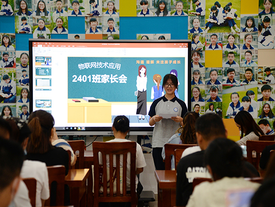 邱雨馨以“深化合作,同筑夢想”為主題,全面介紹學校基本情況以及物聯網技術應用(計算機技術應用方向)專業班級的中職階段三年發展規劃。她還向家長們提出“六個一”倡議:樹立一個榜樣、保持一份關注、保留一定自主權、培養一項生活技能、堅持一項家庭互動、形成一種信任感。