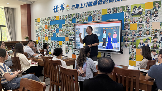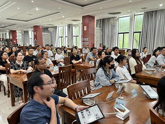 會議第二個階段“家校共育”在圖書館閱覽室召開,家校雙方齊聚一堂,開展面對面交流。