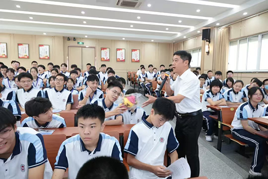 走進建校門:“在建校的發展歷程中,前后共走過六扇門”,龔磊以校門變遷為切入點,分享學校一路由嘉興縣十八中學走來,幾易校名、幾度搬遷,不斷發展壯大的過程,為1031名新同學們走進建校門引路領航。