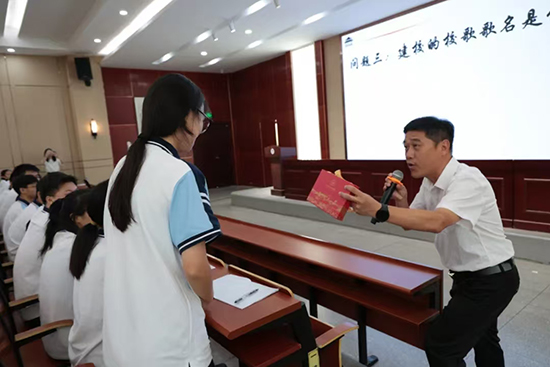 跨入成長門:龔磊無比自豪地向新生介紹一批批走出校門的優秀畢業生、在校生,他們勇擔責任、敬業創新的故事,鼓勵全體建校新生以身邊的榜樣為例,傳承優良校風,爭做新時代建筑行業的先頭兵,早日跨入成長門,書寫建校發展新篇章。