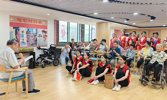 浙江省湖州藝術與設計學校學前教育專業部“向陽花開”志愿服務分隊為老人們表演了紅歌串燒、民樂演奏、舞蹈表演、朗誦等精彩紛呈的文藝節目,用青春活力給福利院帶來一片歡聲、笑語與掌聲。