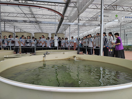 首先,同學們來到了智慧生產中的科技農田。在魚菜共生基地,同學們領略了生態與科技完美融合的現代化田園風光。通過講解員的細致解說,大家知曉了如何借助傳感器實時監測水質、光照與溫度,從而實現精準喂養與灌溉。這種高效、環保且可持續的生產方式,如同一股強勁的旋風,徹底顛覆了他們對傳統農業的認知,成功激發了他們對科技農田的濃厚興趣。