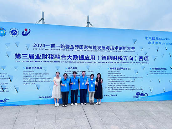 9月20日至9月22日,2024一帶一路暨金磚國(guó)家技能發(fā)展與技術(shù)創(chuàng)新大賽第三屆業(yè)財(cái)稅融合大數(shù)據(jù)應(yīng)用(智能財(cái)稅方向)全國(guó)總決賽在安徽審計(jì)職業(yè)學(xué)院舉行。來(lái)自全國(guó)21個(gè)省市的36支隊(duì)伍同臺(tái)競(jìng)技。海鹽職業(yè)教育中心俞唐天、彭煥媛、肖沁秀、李依婷四位同學(xué)代表浙江省參加全國(guó)總決賽。經(jīng)過(guò)激烈角逐,該校四位同學(xué)以753.76的高分?jǐn)孬@全國(guó)總決賽團(tuán)體第一名,喜獲金牌。