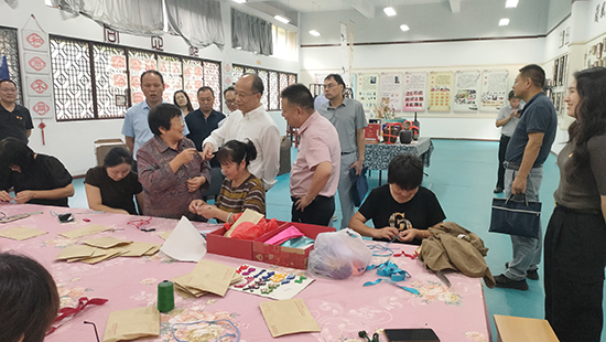 評估組首先參觀了果蔬基地,對學(xué)校老少攜手田園模式頗感興趣;一路參觀到非遺教室,對各種非遺產(chǎn)品興趣頗濃,高度贊揚(yáng)了盤鈕課堂的現(xiàn)成教學(xué)并與盤鈕傳承人親切交談,一路問詢學(xué)校的硬件設(shè)施和軟件創(chuàng)設(shè)。