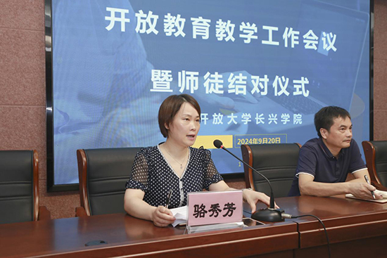 學院黨總支委員、教務處主任駱秀芳對開放教育教學工作進行具體布置。她首先對上學期線上線下教學督導情況進行反饋,結合期末考試成績統計分析結果,對上學期教學情況進行小結。隨后布置了新學期導學授課工作,對相關事項進行重點強調,并從常規、優化、創新三個層面闡明了新學期教學工作的目標、要求及方向。