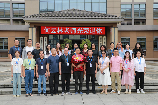 榮退儀式上大家集中觀看了何云林老師教育生涯的回顧短片,周立軍為何云林頒發(fā)了退休證、贈(zèng)送“榮休紀(jì)念”牌匾和鮮花。與會(huì)老師紛紛發(fā)言,表達(dá)對(duì)何老師的歡送離別之情,大家回憶了與何老師共事的點(diǎn)點(diǎn)滴滴并對(duì)何老師送出了美好的祝愿,并在一樓廣場集體合影留念。