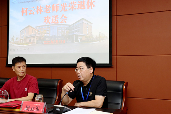 院長周立軍代表學(xué)院黨支部和學(xué)院致歡送辭,向光榮退休的何云林老師表示衷心的祝賀和親切的問候,對(duì)何云林為學(xué)院的建設(shè)和發(fā)展的辛勤付出表示感謝,并向其致以最真摯的祝福。
