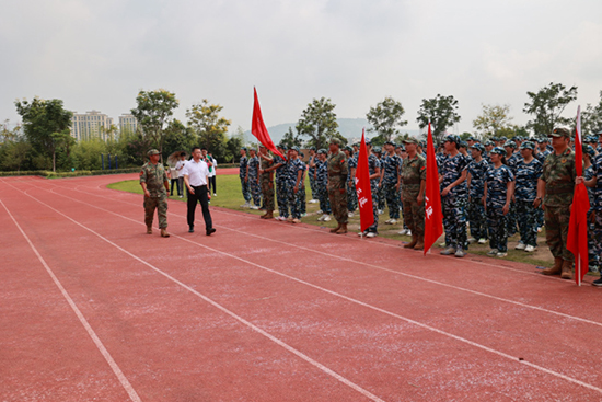侯浩樂在結營致辭中表示:國防教育時間雖短,但意義深遠。它不僅是對同學們身心素質的一次全面考驗,更是培養團隊協作精神、增強國防意識的重要一課。同學們用實際行動詮釋了“堅持就是勝利”的深刻內涵,展現了不畏艱難、勇往直前的青春力量。希望同學們能將這份寶貴的軍訓經歷轉化為學習生活的動力,在未來的道路上像紫藤花一樣,不斷向上,自由開放!