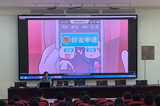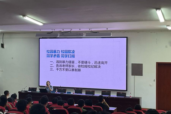 在談到校園暴力時,謝聰聰警官強調(diào),面對校園暴力,首先要保持冷靜,及時向老師和家長報告情況,必要時可以報警處理。她還教授了學生們一些基本的自我保護技巧,以應對突發(fā)情況。謝聰聰警官則通過視頻資料,讓學生們了解校園暴力的嚴重后果,呼吁大家共同抵制校園暴力,營造和諧校園環(huán)境。