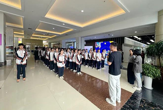在織里鎮童裝商會黨委書記史寧慧及相關人員的陪同下,浙江省湖州藝術與設計學校師生先后參觀了童裝海外貿易選品中心、象嶼跨貿服務平臺、童裝設計中心、童裝面料主題館及色彩中心等,通過近距離觀察、實地走訪,同學們了解到童裝的多樣性,感受到童裝設計的力量,認識到面料對于童裝舒適度和美觀度的重要性。
