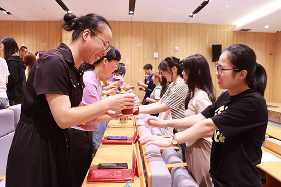 在徒弟向師傅敬茶的環(huán)節(jié)中,41位新教師手捧清茶,面向師傅,并深深鞠躬。這一傳統(tǒng)而富有意義的儀式,不僅是對師傅辛勤付出的表達,也是師徒間情感與責(zé)任傳遞的象征,預(yù)示著一段新的師徒情誼就此開啟。