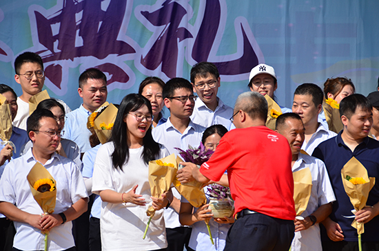 隨后,各班班長手捧鮮艷的向日葵,一一為班主任獻上這份簡單卻飽含深情的禮物。向日葵,以其向陽而生的姿態,生動詮釋了學生們對班主任的感激與敬愛,也預示著在班主任的引領下,學生們將如向日葵般,向著光明與希望不斷前行。
