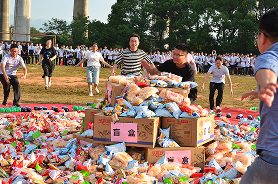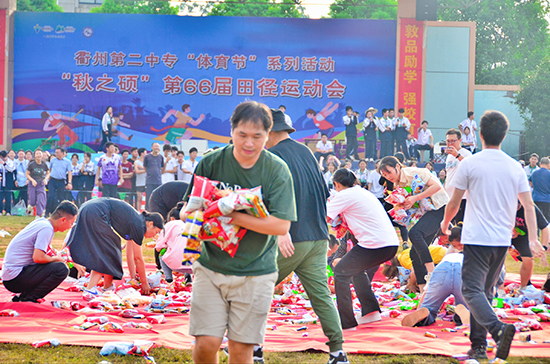 黨委書記徐凌志站在圈外,宣布活動(dòng)正式開始。隨著他的一聲“開始”,原本靜謐的田徑場瞬間沸騰起來,全體班主任仿佛回到了青春年少,帶著滿腔的熱情與斗志,從不同方向如離弦之箭般沖向那片零食的海洋。