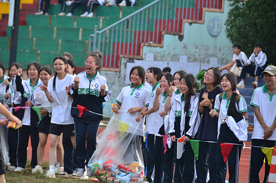 班主任們或彎腰疾跑,或跳躍躲避,遮擋對手的“攻勢”,全力以赴地爭奪著每一份零食。場邊的同學(xué)們則是熱情高漲,紛紛為各自的班主任加油助威,歡呼聲、笑聲此起彼伏,將現(xiàn)場氣氛推向了高潮。