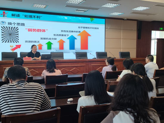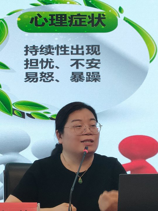 講座圍繞中職學(xué)生危機(jī)干預(yù)展開。柳老師從學(xué)業(yè)遭受挫敗、師生關(guān)系緊張、同伴交往障礙、家庭關(guān)愛缺失等方面為大家解讀了“處境不利”學(xué)生。根據(jù)情緒變化、學(xué)業(yè)下滑、社交退縮、行為異常等四種危機(jī)信號表現(xiàn),指導(dǎo)老師們?nèi)绾巫R(shí)別“危機(jī)信號”。針對“危機(jī)信號”識(shí)別標(biāo)準(zhǔn),分析成因,并提出應(yīng)對措施,實(shí)施“精準(zhǔn)干預(yù)”。結(jié)合青少年 的內(nèi)在和外在風(fēng)險(xiǎn)因素,告知老師們樹立“五大認(rèn)知”,共筑“心靈家園”。